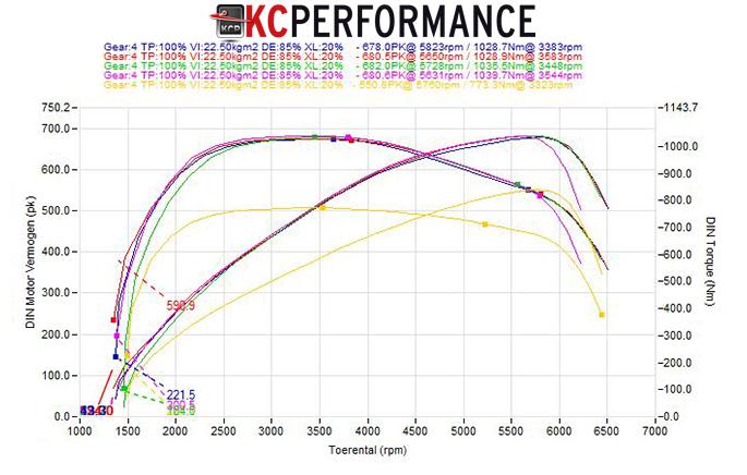 Bij KCPerformance zijn we altijd op zoek naar nieuwe uitdagingen, en deze RS7, was daarop geen uitzondering. Met een focus op prestaties en betrouwbaarheid hebben we deze krachtpatser aangepakt met een reeks upgrades. We begonnen met Cerakote downpipes om zo de katalysators te verwijderen en de hitte uit de motorruimte te houden. Vervolgens kwamen er nog 2 rechte buizen om de tweede katalysatoren te verwijderen. Het resterende uitlaatsysteem werd vervangen door een gedempt Milltek Motorsport systeem met ValveSonic dempers wat in zijn totaliteit zorgde voor. Verbeterde warmteafvoer en een agressiever geluid. Met een op maat gemaakte Stage 2 Chiptuning hebben we de motorprestaties geoptimaliseerd voor een nog betere rijervaring. Natuurlijk hebben we ook gezorgd voor een grondige onderhoudsbeurt, met nieuwe filters, vloeistoffen, bougies en bobines om ervoor te zorgen dat de RS7 in topconditie blijft. Op de rollenbank heeft onze inspanning zijn vruchten afgeworpen, met indrukwekkende resultaten van 680 pk en 1040 Nm koppel.