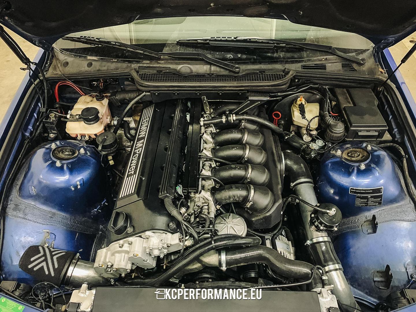 BMW M3 E36 turbo-project De lijst met werkzaamheden en onderdelen lijkt eindeloos! Hieronder een selectie van het werk dat we hebben gedaan. Resultaat: 500+ pk Turbo: Garret GTR3576R + Twin Scroll T3 behuizing Turbosmart Wastegate SPA Spruitstuk Motor: Cilinderkop gereviseerd Pistons Drijfstangen Upgrade klepveren Vanos gereviseerd DW400-brandstofpomp DW780cc injectoren Oliepomp upgrade Distributieketting Uitlaat: Volledig aangepaste uitlaat Externe wastegate Aangepaste 3,0 inch downpipe Koeling: Slangenset Roose Racing Radiator Mashimoto Thermostaat Intercooler Onderhoud: Olie + oliefilter Brandstoffilter V-snaar Bougie Ontstekingspoelen Software ECU Master Black Aangepaste KCPerformance Tuning op Dynostar