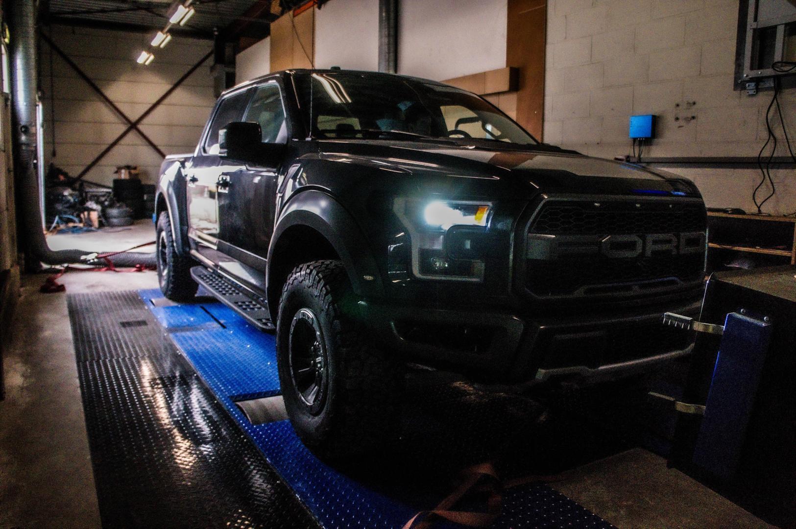 Klaar om het circuit en het terrein te overheersen! Deze Ford F150 Raptor, die eruitziet als Darth Vader, is getuned met onze downpipes en upgrade turbo's, gasklep sandwich plate met 2 extra brandstof injectors met piggyback controler. Samen met onze afstelling zal dit stage 3 pakket je Raptor omtoveren tot een T-Rex!