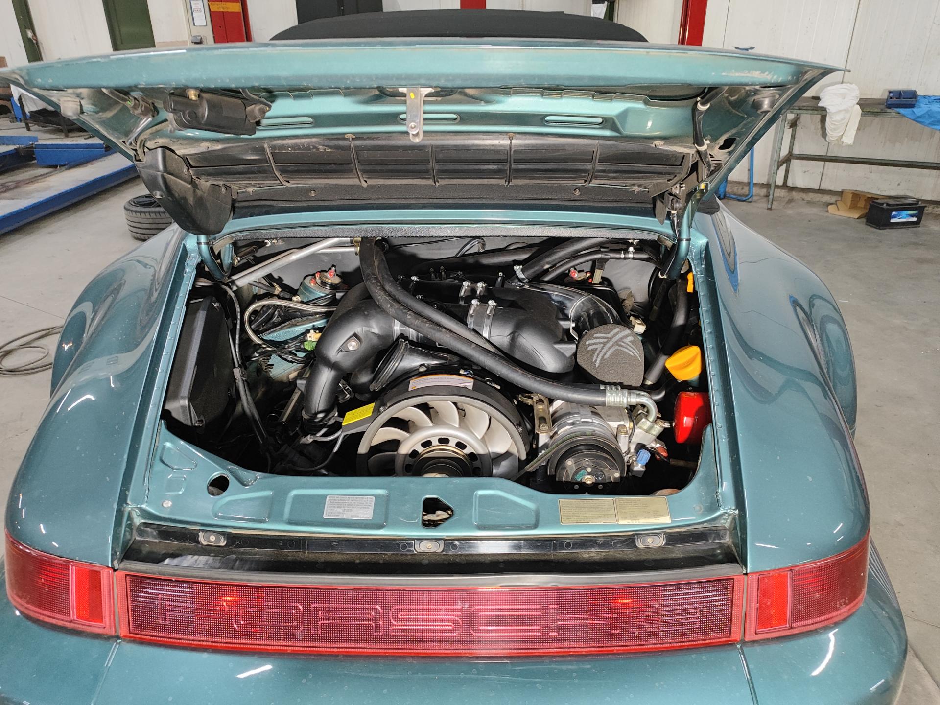 Bij deze Porsche 964 hebben we de originele, wat verouderde Tiptronic 4-versnellingsbak vervangen door een moderne PDK-transmissie. Het resultaat is een klassieker die zijn authentieke karakter behoudt, maar nu schakelt met de snelheid en precisie van een hedendaagse sportwagen. De PDK zorgt voor razendsnelle, vloeiende schakelmomenten, waardoor het rijplezier enorm toeneemt – zowel op straat als op het circuit. Alle componenten zijn zorgvuldig geïntegreerd, zodat de auto volledig betrouwbaar en gebruiksklaar is, met behoud van de originele functies en elektronica. Tijdens dit project hebben we ook ons eigen KCPerformance Intake System voor de Porsche 964/993 toegepast – een volledig in eigen huis ontwikkeld inlaatsysteem, vervaardigd uit CNC-gefreesd billet aluminium. Deze upgrade verbetert de luchtstroom en efficiëntie aanzienlijk, goed voor een vermogenswinst van ongeveer 30 tot 50 pk. Doordat de auto nu is omgebouwd naar Drive-by-Wire (DBW) in combinatie met de PDK, is het bovendien mogelijk geworden om rev-matching te realiseren. Dat zorgt voor naadloze terugschakelmomenten en een uiterst verfijnde rijervaring – precies wat je verwacht van een moderne Porsche, maar dan met het pure karakter van een luchtgekoelde klassieker.